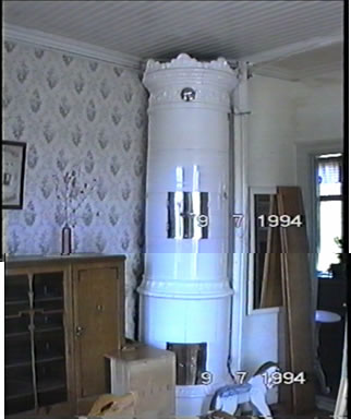 Det här rummet vet jag inte vad det hade för funktion, jag minns det bara som ett av rummen man satt i när det var kalas, som barn satt man ju inte i Salen. En rund kakelugn i ena hörnet, och resten av väggen mot köket täcktes av en rad med fast inbyggda garderober. Så vitt jag kan bedöma av stilen byggdes dom in någon gång på femtiotalet.