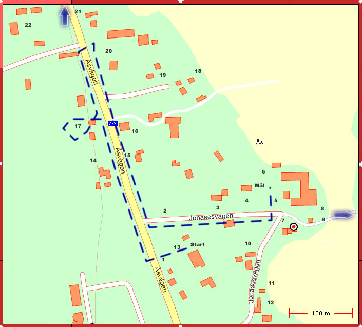 Som ett stöd för minnet hade P.O. Jonsson gjort en karta och en förteckning över dom fastigheter som tillhör Åhs by.