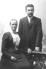 | Rättar-Johanna, född Älvström, var en annan tant som hyrde av Johan. Hon var gift med Per Erik Larsson som var rättare i Nässja och Österänge. När hon blev änka (antar jag?) Ringde hon till Johan och bad och få hyra i Åhs eftersom "hon inte ville bo dän framme lamä pattje". Walter har berättat att han som ung fick hjälpa Johanna med att snöra ihop korsetten, ett mangrant arbete eftersom han fick "tåcka ner" en hel del som putade ut. Men vill man vara fin så får man lida pin. |